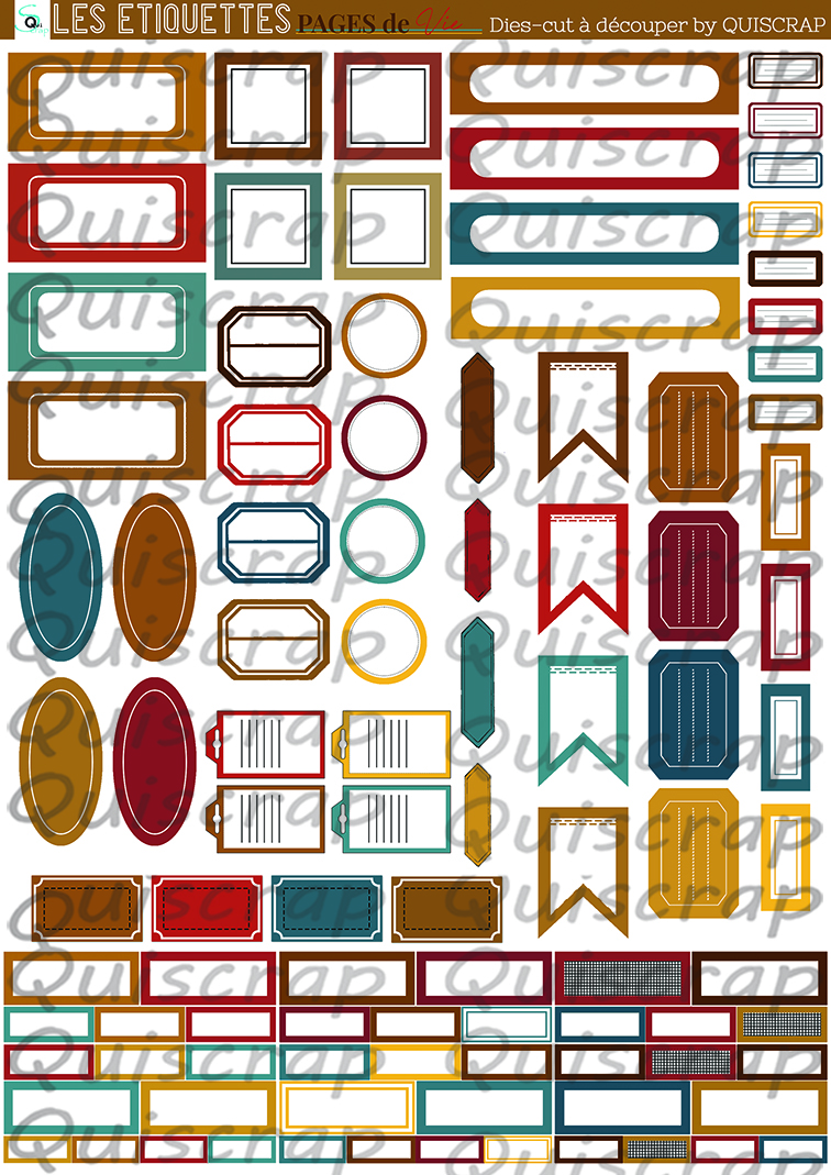 Planche de dies-cut A4 – Les étiquettes – Collection Pages de vie – Lot de 5