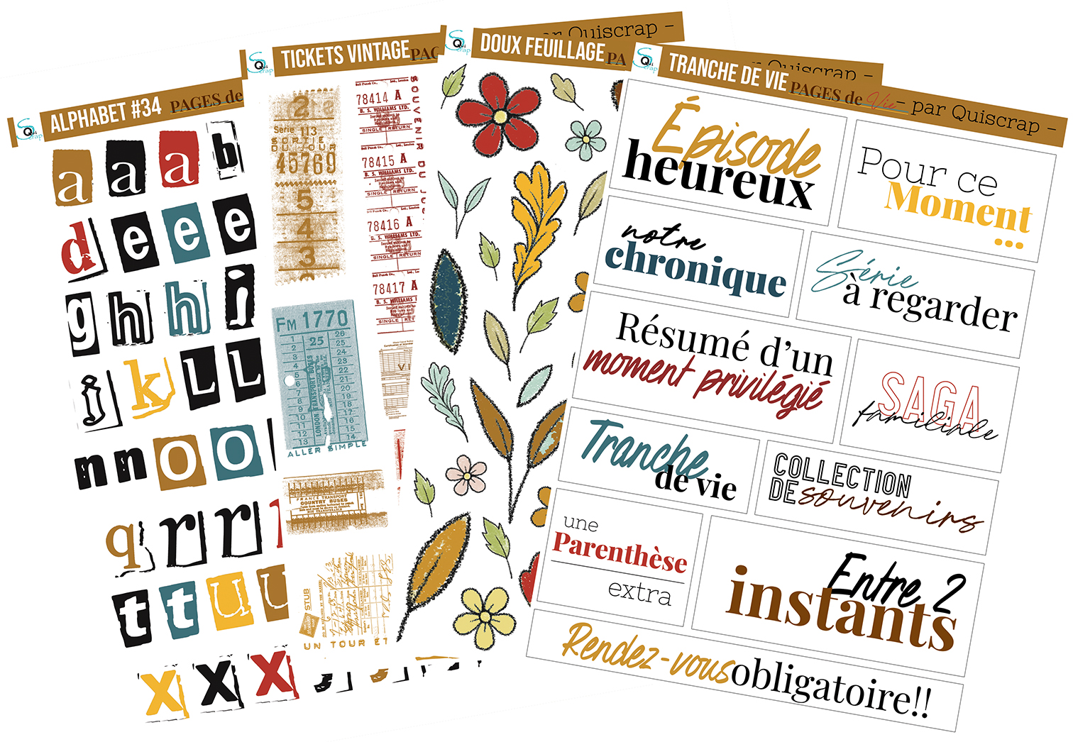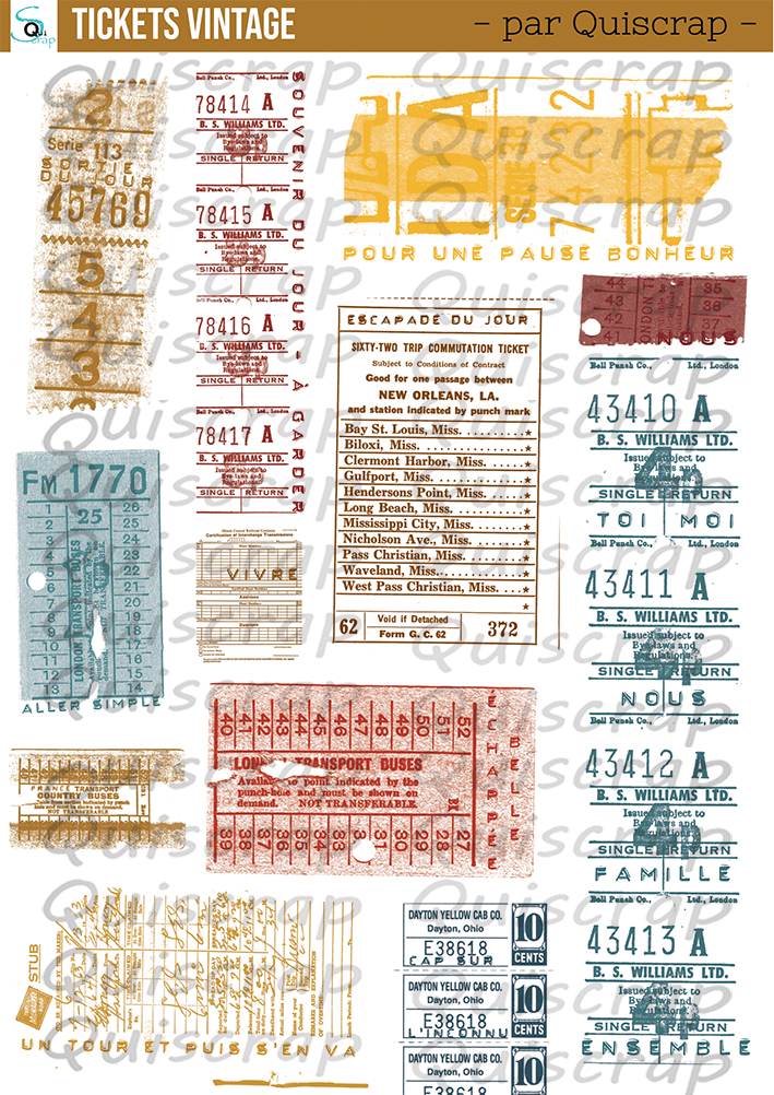 Planche de dies-cut A5 – Tickets vintage – Collection Pages de vie – Lot de 5