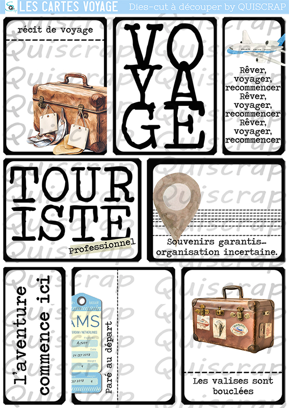 Planche de Dies-cut – Les cartes voyage – Lot de 5